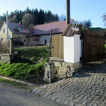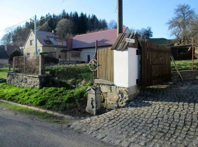 Cross in Mlázovy near the garden, pamětní kříž v obci Kolinec, okres Klatovy