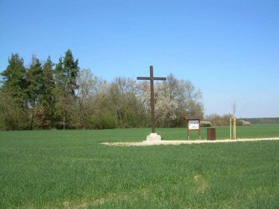 Dřevěný kříž Smíření severně od Dobřánek, pamětní kříž v obci Dobřany, okres Plzeň-jih