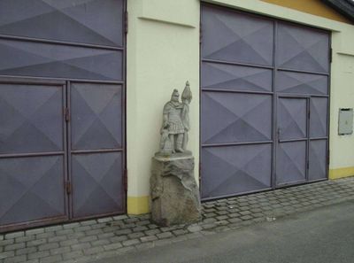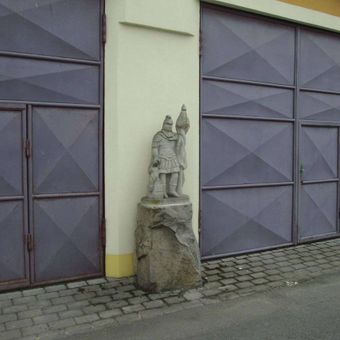Socha v Nečtinách před hasičárnou, statue in Nečtiny, Czech Republic