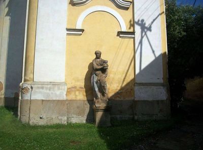 Socha svaté Barbory u kostela v Kozolupech, statue in Kozolupy, Czech Republic