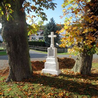 Kříž ve Lhotce na návsi, pamětní kříž v obci Nekmíř, okres Plzeň-sever