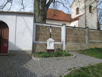 Kříž v Číčově u kostela, pamětní kříž v obci Spálené Poříčí, okres Plzeň-jih