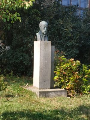 Busta Tomáše Garrigue Masaryka v Plané, busta na podstavci v Plané, části obce Hromnice, u bývalé školy