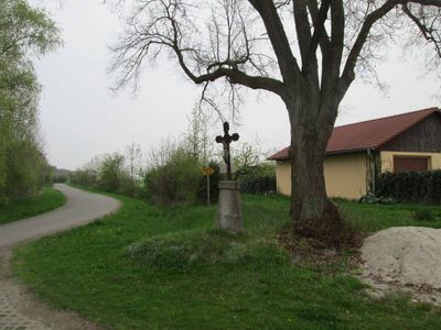 Kříž u Radějovic u plotu