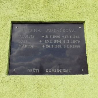 Pamětní deska Motáčkovy rodiny v Čechtíně, pamětní deska v okrese Třebíč