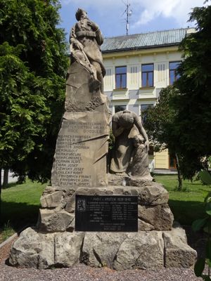 Pomník padlým v Doudlebech nad Orlicí, pomník v parčíku před školou