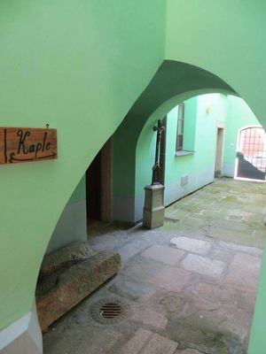 Kříž na dvoře Šrejnarovského domu v Pelhřimově