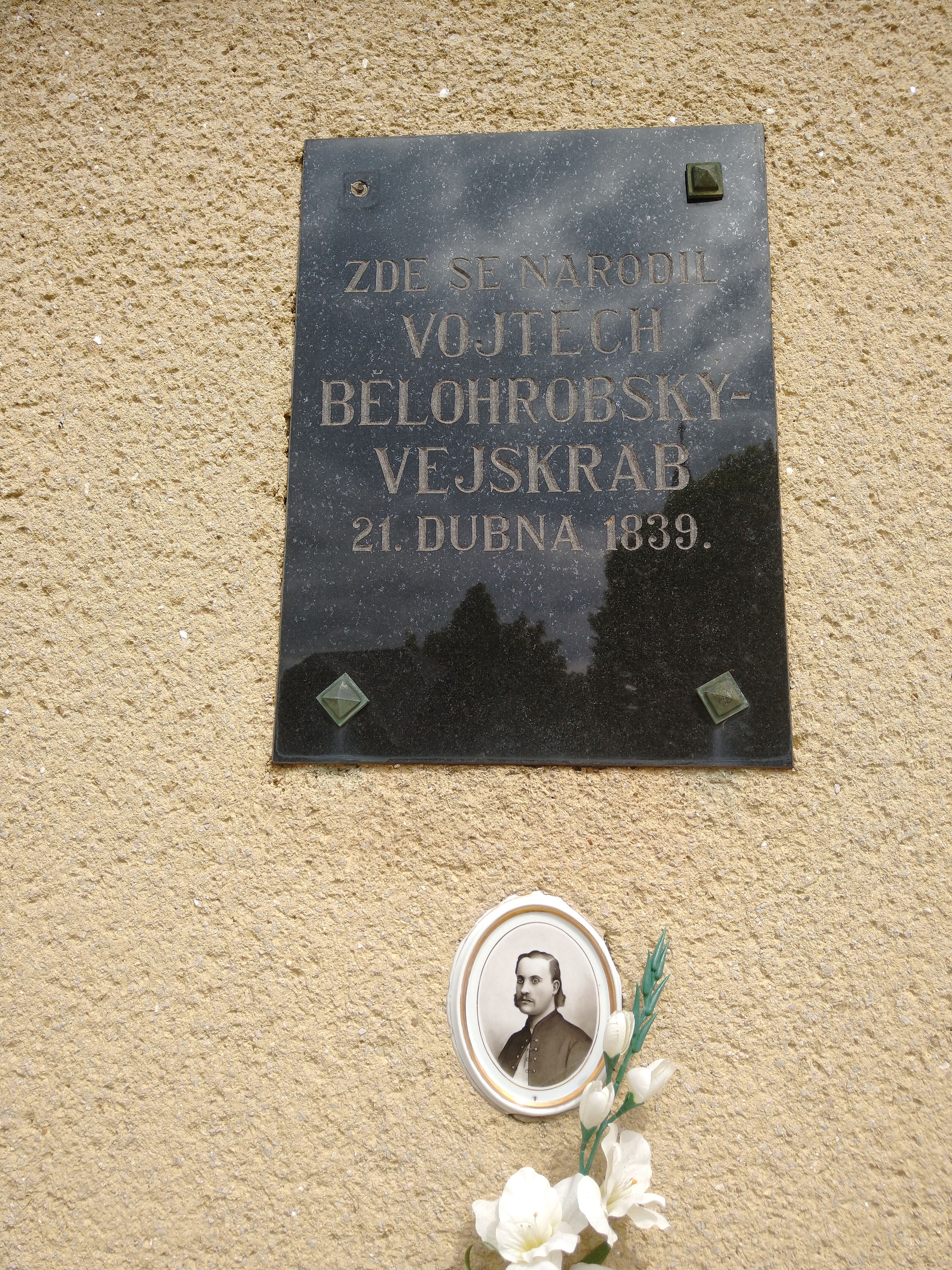 Pamětní deska Vojtěcha Bělohrobského-Vejskraba v Černovicích