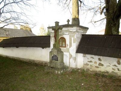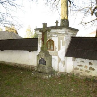 Kříž u kostelní zdi v Častrově
