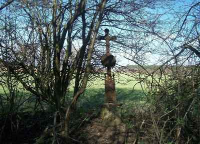 Kříž severně od Vintířova mezi stromy