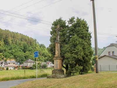 Kříž v Dlouhomilově u kostela