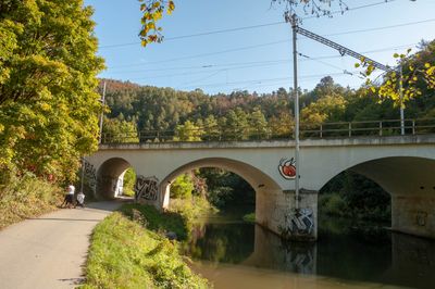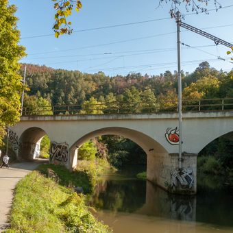 Railway bridge over the Svitava and Mlýnské nábřeží in Brno, železniční most v Brně
