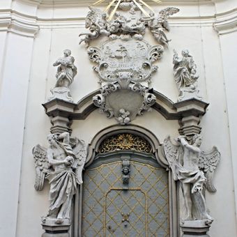 Sochy nad portálem kostela svatých Janů v Minoritské ulici v Brně