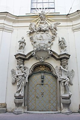 Sochy nad portálem kláštera minoritů v Minoritské ulici v Brně
