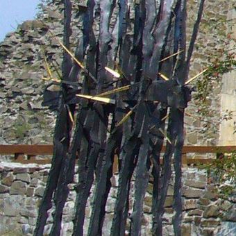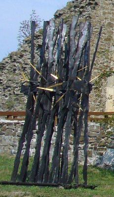 Kovové plastiky u příkopu před jádrem hradu Helfštýn, plastika v obci Týn nad Bečvou, okres Přerov