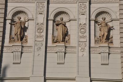 Sochy v nikách na boku budovy Fakulty sociálních studií Masarykovy univerzity v Brně, statue in Brno, Czech Republic
