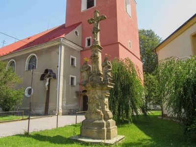 Sousoší Kalvárie v Hnojicích u kostela, statue in Hnojice, Czech Republic