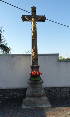 Kříž v Bítově u vchodu do kostela, pamětní kříž v obci Bítov, okres Znojmo