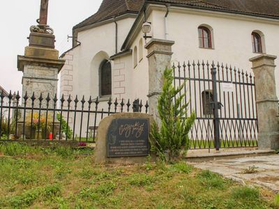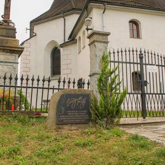 Pomník v Sobotíně před kostelem, monument in Sobotín, Czech Republic