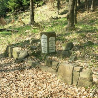 Francouzský kámen k bitvě 1813 u lesní cesty nad Dubím