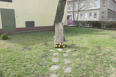 Pomník u plavecké haly v Postoloprtech, monument in Postoloprty, Czech Republic