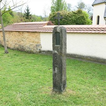Smírčí kříž vlevo u kostela svaté Kunhuty v Královském Poříčí