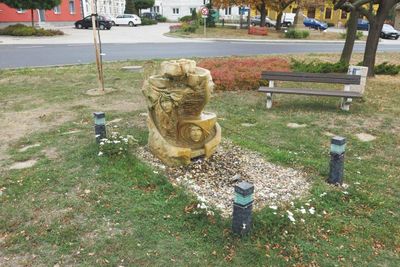 Pomník první zmínky o obci na návsi v Hrušovanech