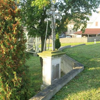 Podstavec ulomeného kříže na návsi v osadě Dolní Řepčice