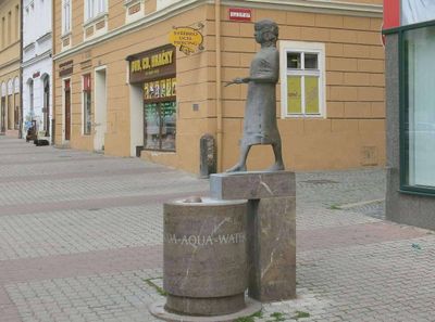 Socha dívky s virgulí v Dlouhé ulici v Litoměřicích, statue in Litoměřice, Czech Republic