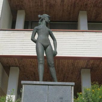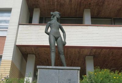 Socha sportovkyně před školou v Mojžíři, statue in Ústí nad Labem, Czech Republic