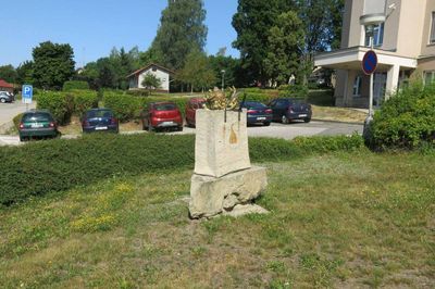 Kamenná plastika jižně od pavilonu 3 nemocnice v Jilemnici