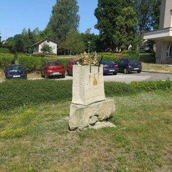 Kamenná plastika jižně od pavilonu 3c v nemocnici v Jilemnici