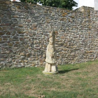 Socha Pierot na parkánu hradeb u Katovy uličky v Kadani, statue in Kadaň, Czech Republic