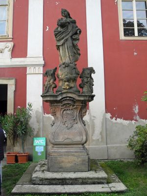 Socha Panny Marie na nádvoří zámku ve Stekníku, statue in Zálužice, Czech Republic