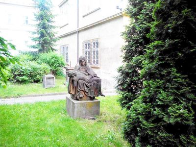 Socha před muzeem v Chomutově, statue in Chomutov, Czech Republic