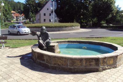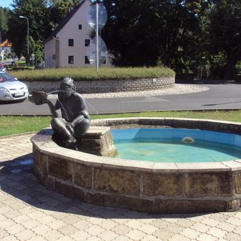 Kašna se sochou rybáře na Tyršově náměstí v Novém Boru, kašna v obci Nový Bor, okres Česká Lípa
