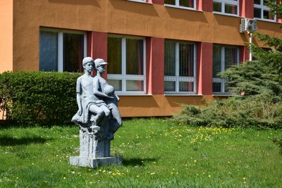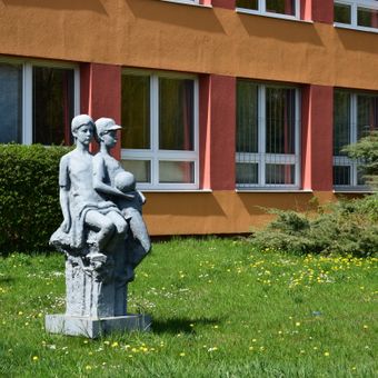 Socha matky s dítětem u školy v Březenecké ulici v Chomutově