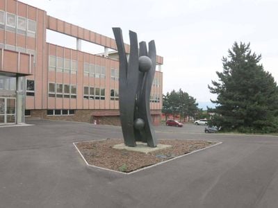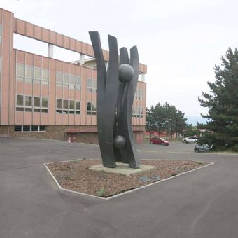 Kamenná plastika v u Komerční banky Lipové ulici v Mostě