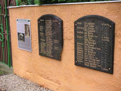 Pomník padlým na zdi hřbitova u kostela sv. Václava a Blažeje v Děčíně, tugu peringatan di Republik Ceko