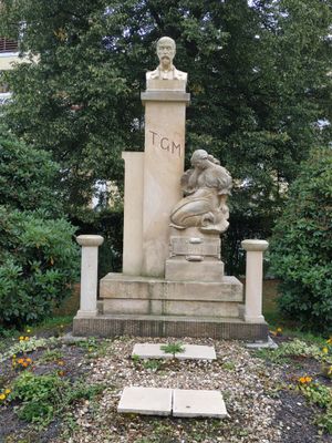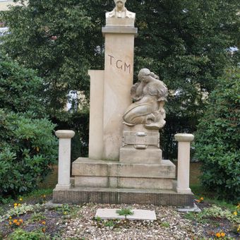 Pomník Emanuela Maxe u zdi zámeckého parku v Sloupu