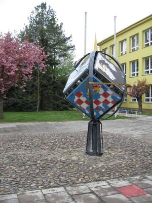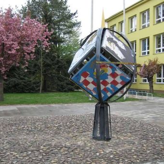 Astroláb před školou v Hoštce, hodiny v obci Hoštka, okres Litoměřice