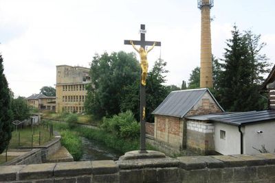 Old cross on the bridge in Zákupy