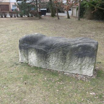 Kamenná plastika v zahradě Aquadromu v Mostě