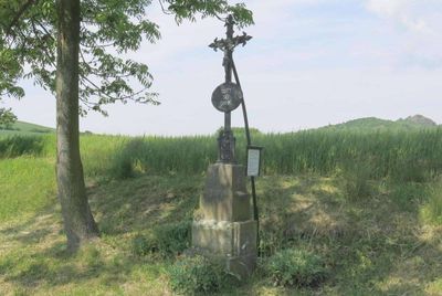 Kříž u odbočky polní cesty od silnice před Teplou, pamětní kříž v obci Vlastislav, okres Litoměřice