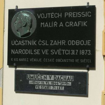 Pamětní deska Vojtěchu Preissigovi na zdi zámku ve Světci, pamětní deska v obci Světec, okres Teplice