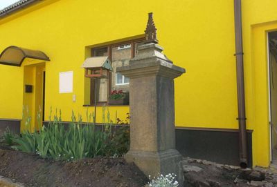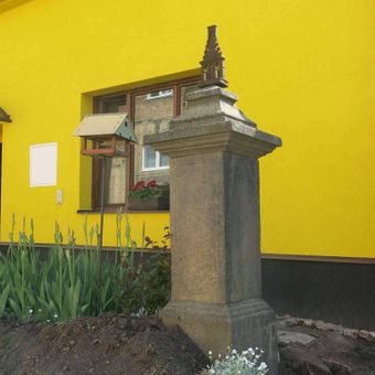 Podstavec s ulomeným křížem za kostelem ve Světci