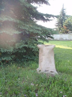 Torzo pamětního kříže u hřbitova v Očihově vlevo, pamětní kříž v obci Očihov, okres Louny