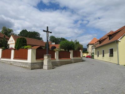Kříž na návsi v Rájově