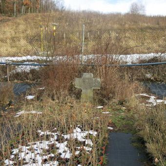 Smírčí kříž v areálu zahradnictví v Drmalech, smírčí kříž v obci Vysoká Pec, okres Chomutov