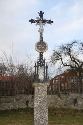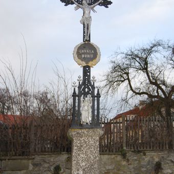 Kříž v Radkově za plotem